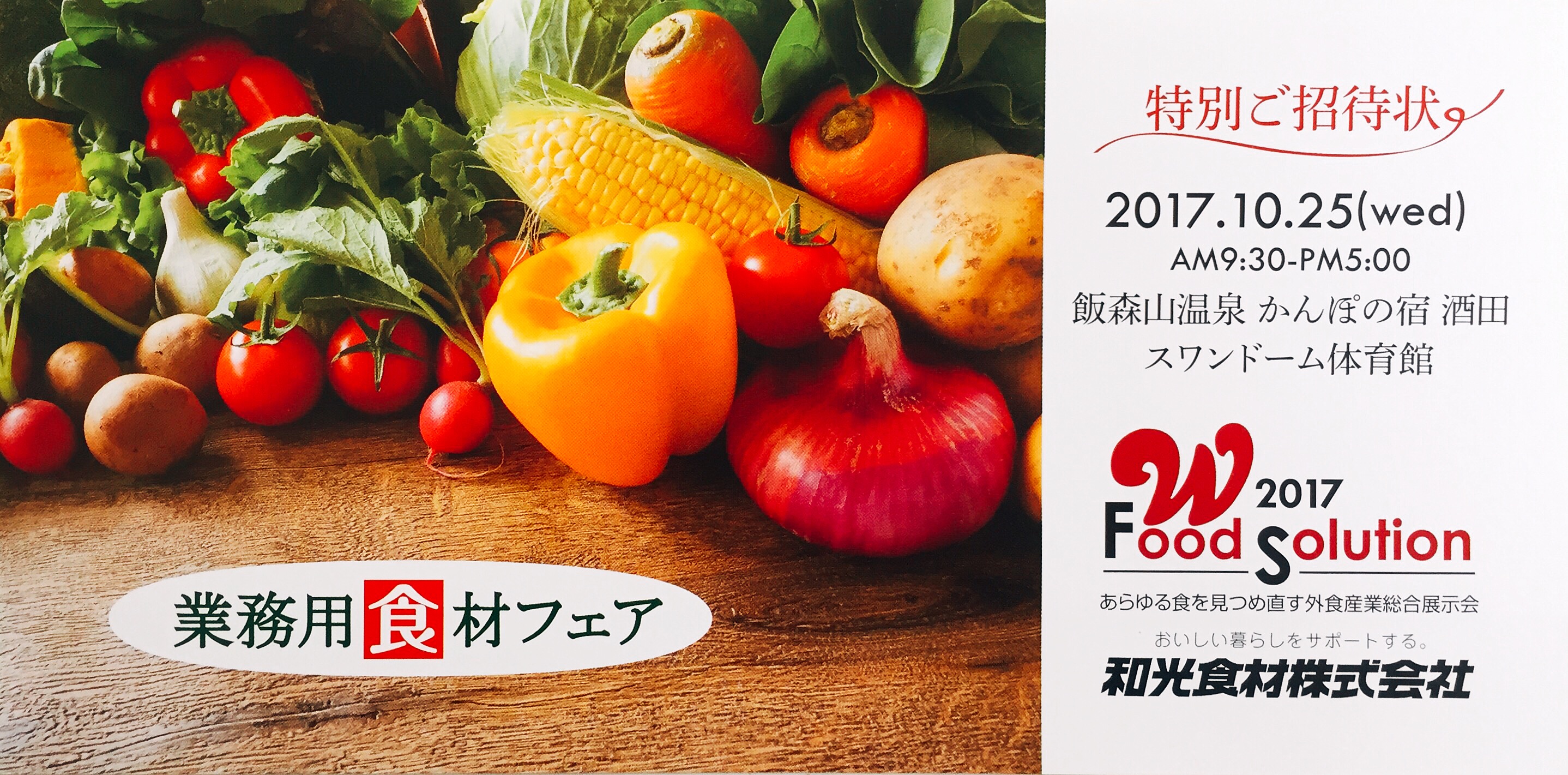 2017フードソリューション 食のトレンド発信フェアは2017.10.25(水)かんぽの宿スワンドーム体育館にて開催いたします。